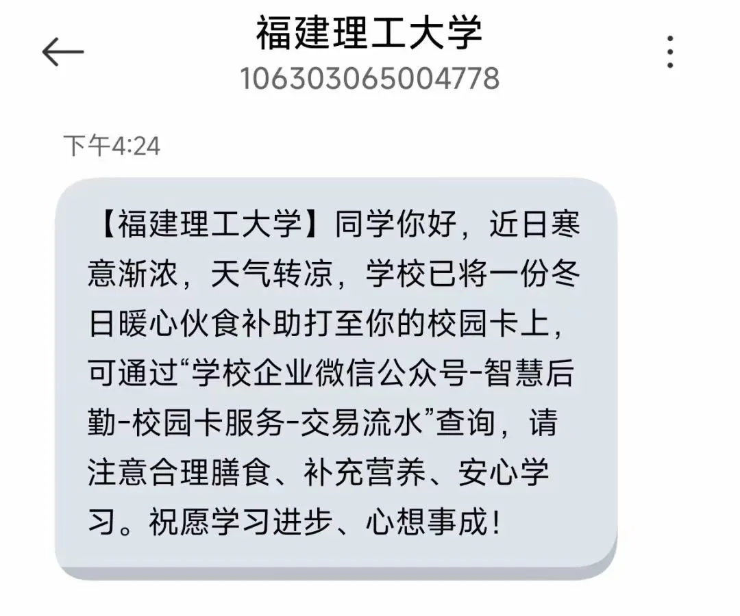“卡里奈何多了500元?” 日前,浙大城市学院 大三学生小穆(假名) 发现我方银行卡里片刻多了一笔钱 梗直她感到猜疑时 一条来自学校“爱城院”App的短信 解开了她的疑问—— 浙大城院披发逾40万元返乡补贴 正本 这是浙大城院的一项暖心资助看成 学校通过返乡交通补贴的形状 为家庭活命艰辛学生提供资助 学生无需肯求 学校通过前期摸排 细目资助对象信息 并径直将补贴打入学生银行卡中 浙江省外学生每东说念主可赢得500元补贴 省内学生每东说念主可赢得200元补贴 本年一次性野心披发40.55万元 “跟着寒假邻近 关于部分家庭活命艰辛的学生来说 返乡的路费可能成为他们的一大职守” 浙大城院学生责任部认真东说念主暗意 “因此咱们决定开展这次返乡补贴看成 但愿大要松开他们的经济压力 让他们大要省心回家与家东说念主团员” 受助学生:这是本年最暖心的系念 这份特别的资助 让受助学生倍感关注 “果真既惊喜,又感德” 小穆说,她的闾阎在新疆 坐火车且归要四十多个小时 “硬卧的火车票大概要600多块钱 有了这笔钱 回家的火车票就基本有了” 旧年寒假小穆莫得回家过年 本年且归她思告诉爸妈 “我在这里过得很好” 福建理工:披发冬日暖心伙食接济 近日,福建理工大学不少学生 也片刻发现我方的校园卡里 多了一笔钱 梗直他们猜疑时 一条短信来了—— “同学你好 近日寒意渐浓,天气转凉 学校已将一份冬日暖心伙食接济 打至你的校园卡上……” 不少学生 晒出短信截图致谢 暗意我方的校园卡 一经收到学校的伙食接济 心里很感动 据悉 这是福建理工大学初次开展的 “冬日暖心饭卡”看成 无需学生肯求,无须审核 悄悄披发又精确到位 鸿沟当今 已接济2490名学生 累计接济17.88万元 通过大数据等妙技 为学生“悄悄”发接济的高校 还有好多 比如,武汉大学 左证学生阔绰概述情况研判 为艰辛学生校园卡充值400元 东南大学推出阳光早餐资助筹办 往部分学生饭卡里悄悄打钱 …… 为各个学校的义举点赞!开云体育(中国)官方网站 |
